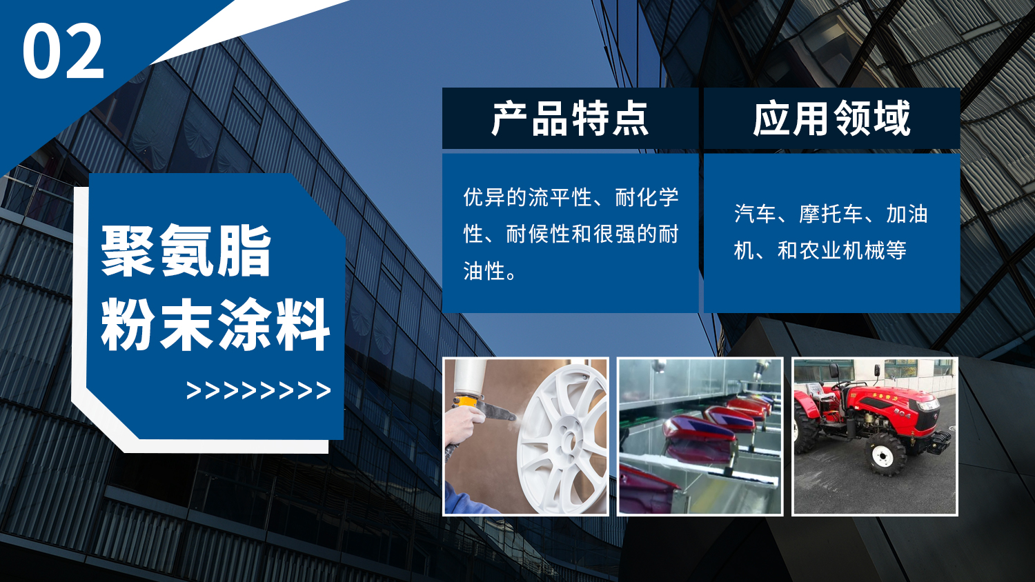 廣泛應用于家用電器、汽車、建材、散熱器、自行車、汽車、家具、健身器材、管道等諸多領域,根據(jù)各個領域產(chǎn)品的表面涂裝的不同要求,為其量身定做設計,批量生產(chǎn)不同系列產(chǎn)品。產(chǎn)品以優(yōu)異的性能,穩(wěn)定的品質(zhì)享譽全省、暢銷全國,并逐步走向國際市場。